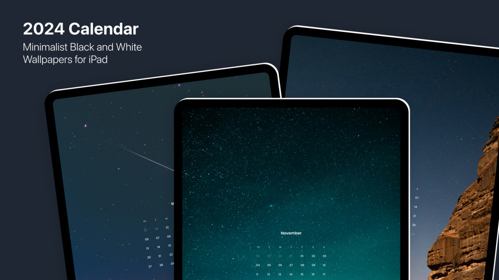 Introducing our night-themed iPad wallpaper collection featuring 12-month calendars for the year 2024.